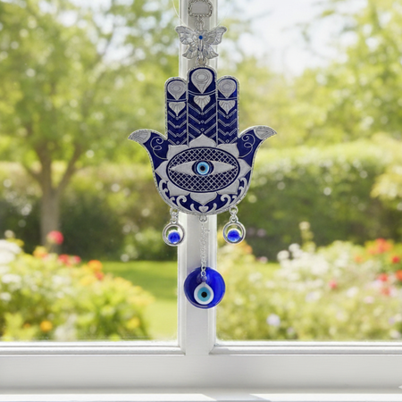 Dije Mano de Fátima con corazón de stras de acero quirúrgico