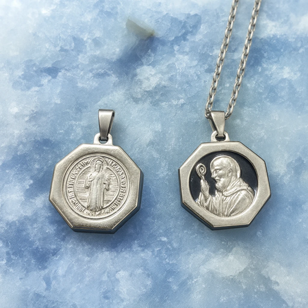 Dije Cruz 4 medallas de San Benito de acero quirúrgico MS