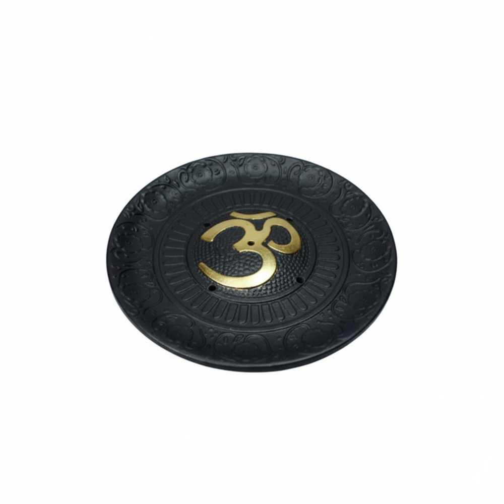 Este portasahumerio de resina con símbolo Om (10 cm) es un accesorio clave para cualquier tienda de artículos místicos, aromaterapia o decoración espiritual. Su diseño circular en tono negro, combinado con el símbolo Om en dorado, crea un contraste elegante y moderno que atrae de inmediato la atención del cliente.