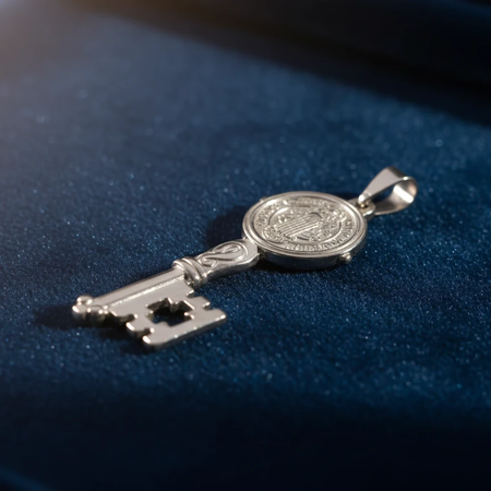 Dije Cruz 4 medallas de San Benito de acero quirúrgico MS
