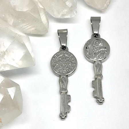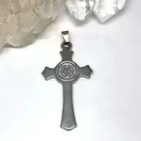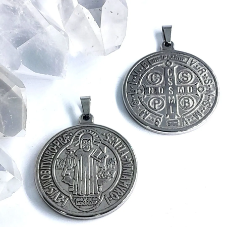 Medalla San Benito color de acero quirúrgico MS