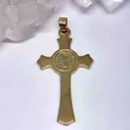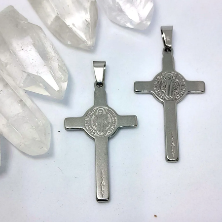 Medalla de San Benito gravada con stras en acero quirúrgico