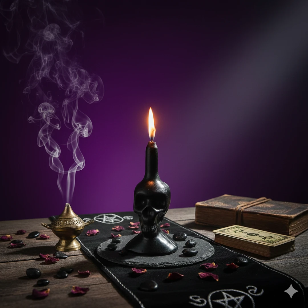 Vela cráneo Negro: Esta vela con forma de cráneo se utiliza para confundir a las personas. También sirven para romper rituales de dominación, si pensamos que una persona nos tiene atrapada esta es la vela ideal para romper ese embrujo.