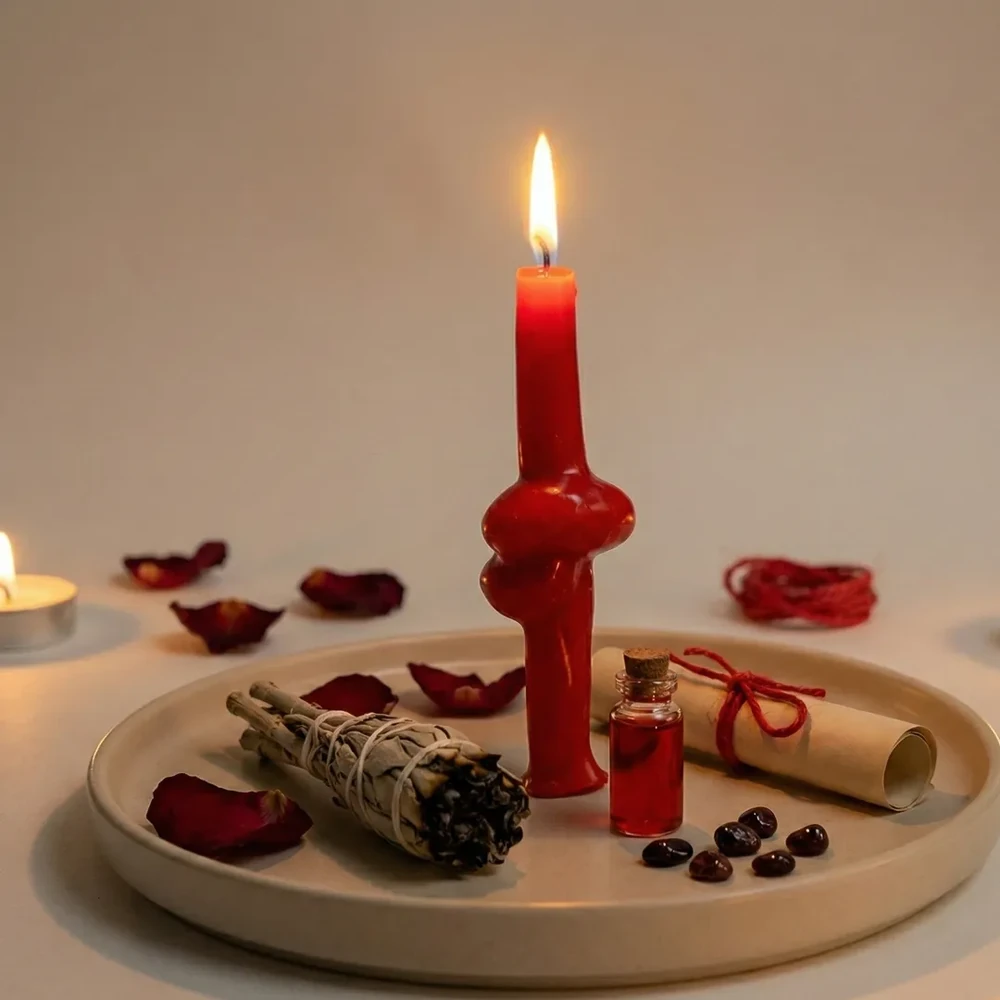 La Vela Nudo es una herramienta ritual de acción directa, utilizada en trabajos donde la intención necesita atar, fijar, asegurar o bloquear una situación específica. Su forma simbólica concentra la energía en un punto central, representando aquello que no se quiere soltar, desatar o permitir que avance.