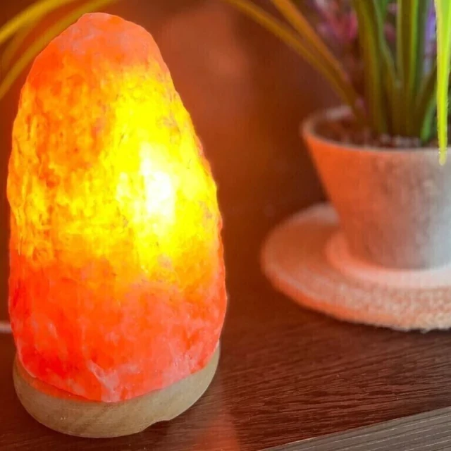 Una pieza auténtica de sal del Himalaya, seleccionada por su calidad, color y pureza. Cada lámpara es única, tallada a mano, y al encenderla proyecta una luz cálida y envolvente que transforma cualquier ambiente.