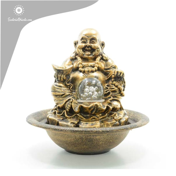 Fuente de agua en resina con Buda de la fortuna con esfera de cristal 23cm