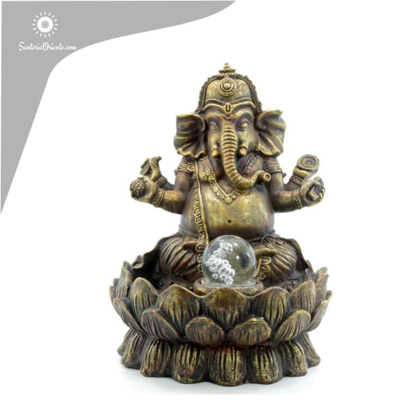 Fuente de Agua en resina con Ganesha y esfera de cristal 23cm