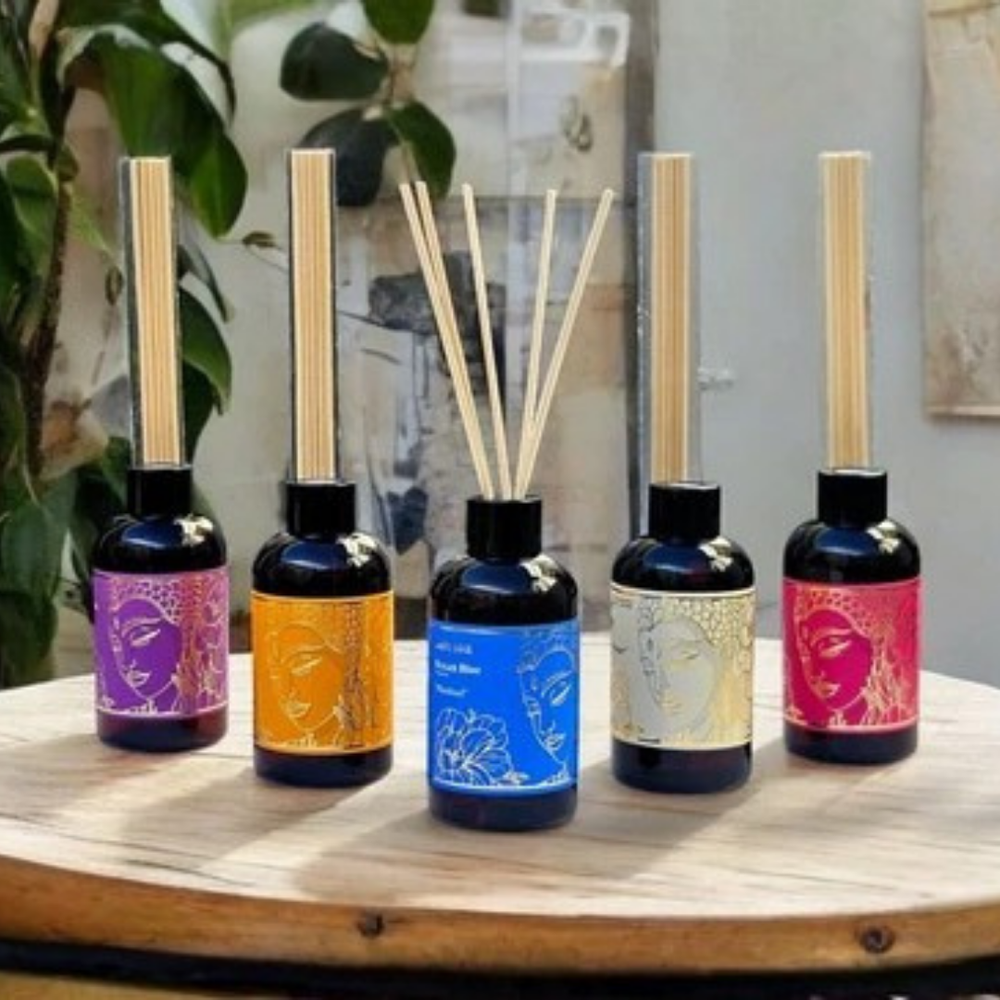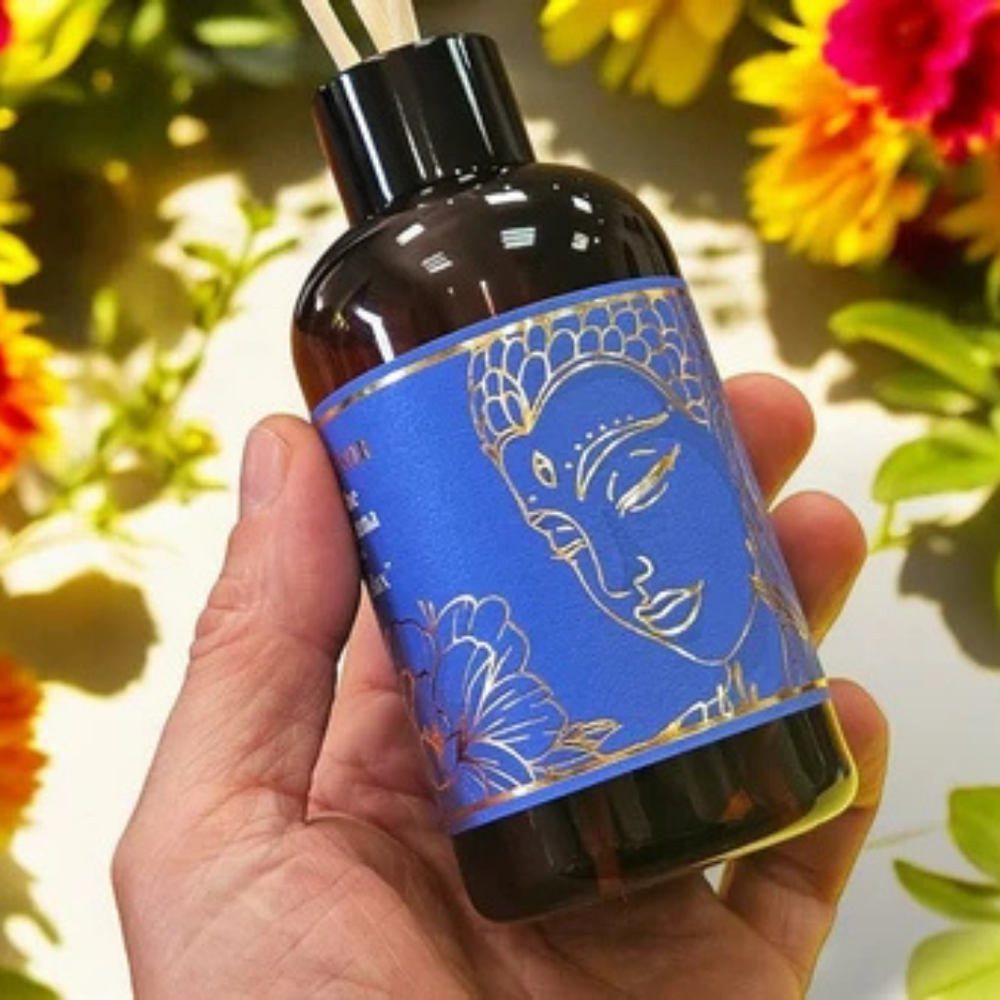 Elegancia, energía y bienestar en un solo envase. Los Difusores Aromanza transforman cualquier ambiente con fragancias envolventes y duraderas, elaboradas con esencias de alta calidad. Su presentación combina arte y equilibrio: botellas de vidrio oscuro con diseño dorado inspirado en el budismo tibetano, ideales para decorar y perfumar al mismo tiempo.