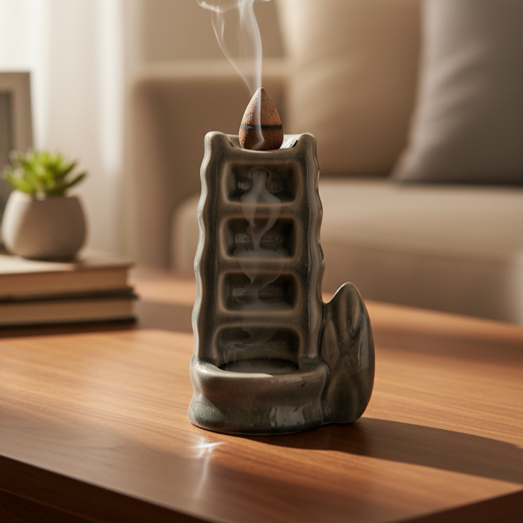 🌀 Cascada de Humo Cerámica Mini Torre 7x10,5 cm – Decoración y Aromaterapia Zen