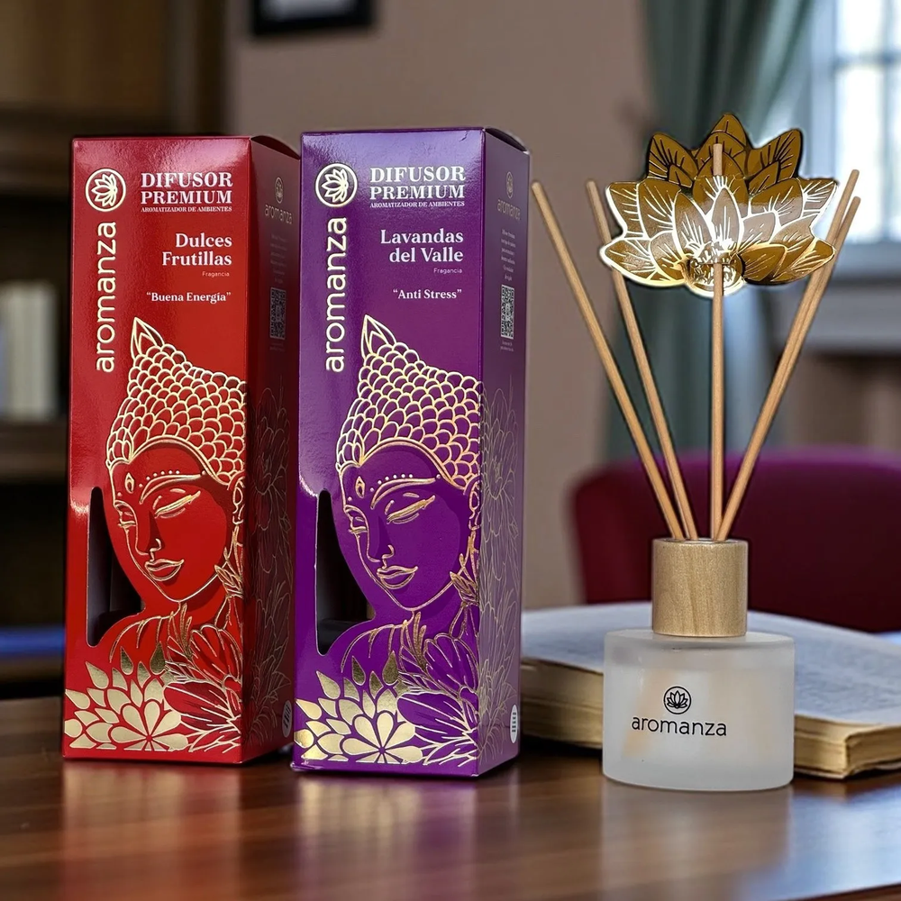 Perfuma y decora tus ambientes con la línea Premium de Aromanza. Cada aroma está inspirado en una intención positiva, ideal para regalar o disfrutar en casa. Su frasco de vidrio esmerilado con tapa madera y varillas asegura una difusión pareja y duradera, acompañado de un packaging elegante que atrae en góndola.