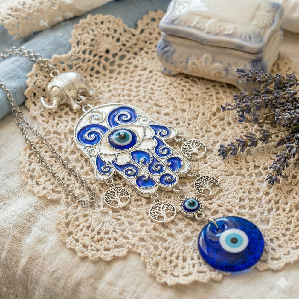 Colgante Mano con Ojo Turco y Árbol de la Vida