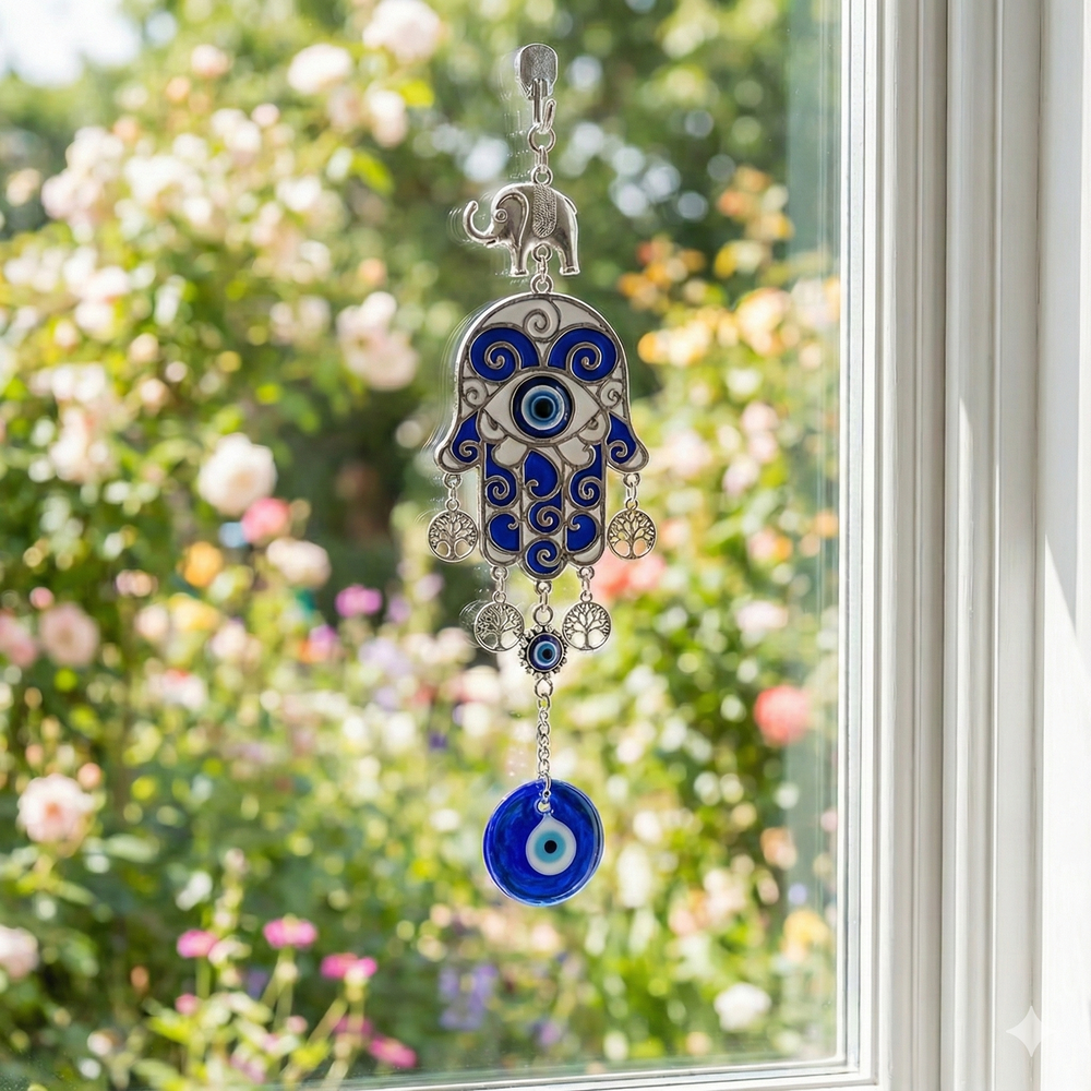 Su combinación de tonos azules intensos, detalles metálicos y colgantes móviles crea un efecto visual llamativo que atrae miradas y convierte este producto en un regalo perfecto y de alta rotación. Es muy buscado por clientes que valoran lo espiritual, lo decorativo y los objetos con significado.