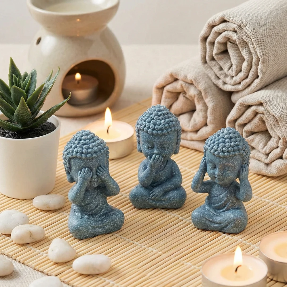 El Set incluye los 3 buditas Las imágenes de Buda hechas de piedra son esculturas que representan al Buda en diversas posturas y expresiones, simbolizando la paz, la sabiduría y la serenidad. Estas piezas, elaboradas con diferentes tipos de piedra, como granito o mármol, suelen tener un acabado detallado que resalta las características del rostro y las vestimentas. Son ideales para la decoración de jardines, espacios de meditación o interiores, aportando un toque de espiritualidad y tranquilidad a cualquier ambiente.