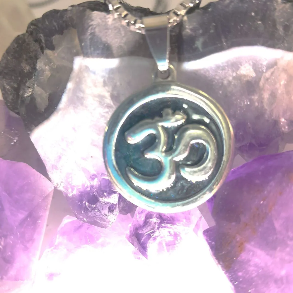 Medalla Om esmaltado negro mediano de acero quirúrgico
