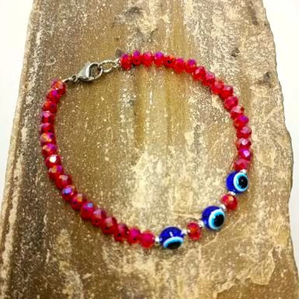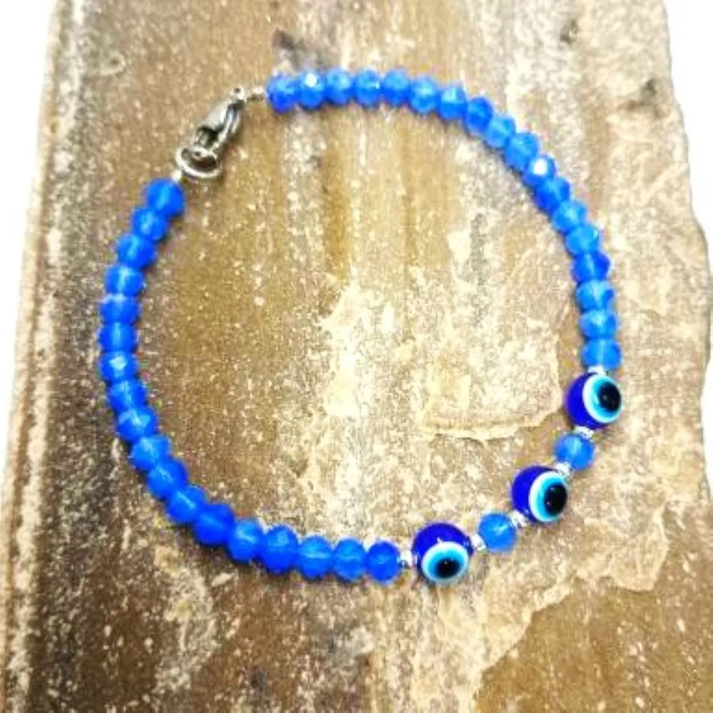 Pulsera de Cristales con Ojos Turcos con tanza metálica