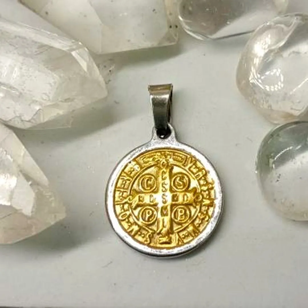 Medalla San Benito gravada con dorado de acero quirúrgico
