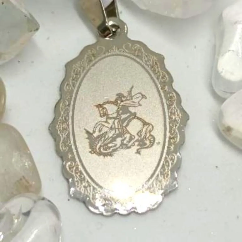 Medalla de San Jorge con oración del Padre Nuestro de acero quirúrgico