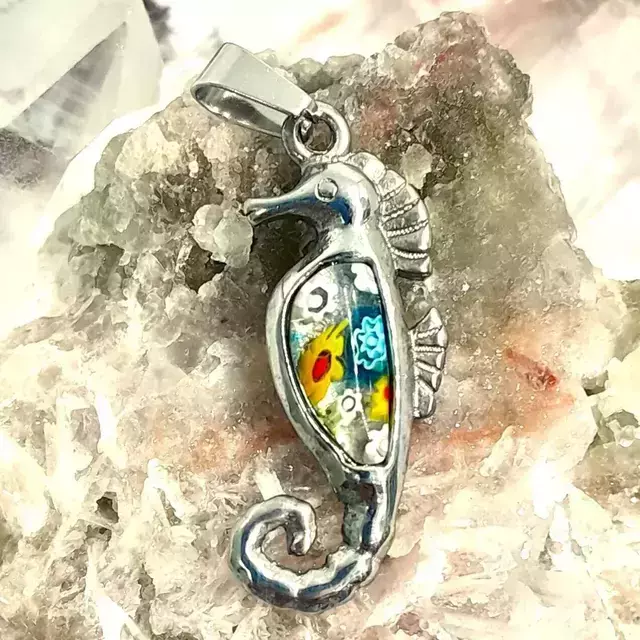 Descubre el Dije de Caballito de mar, una pieza única que combina la belleza del murano con la resistencia del acero quirúrgico. Con medidas aproximadas de 4x1,5x0.5cm, este dije es perfecto para lucir en cualquier ocasión.