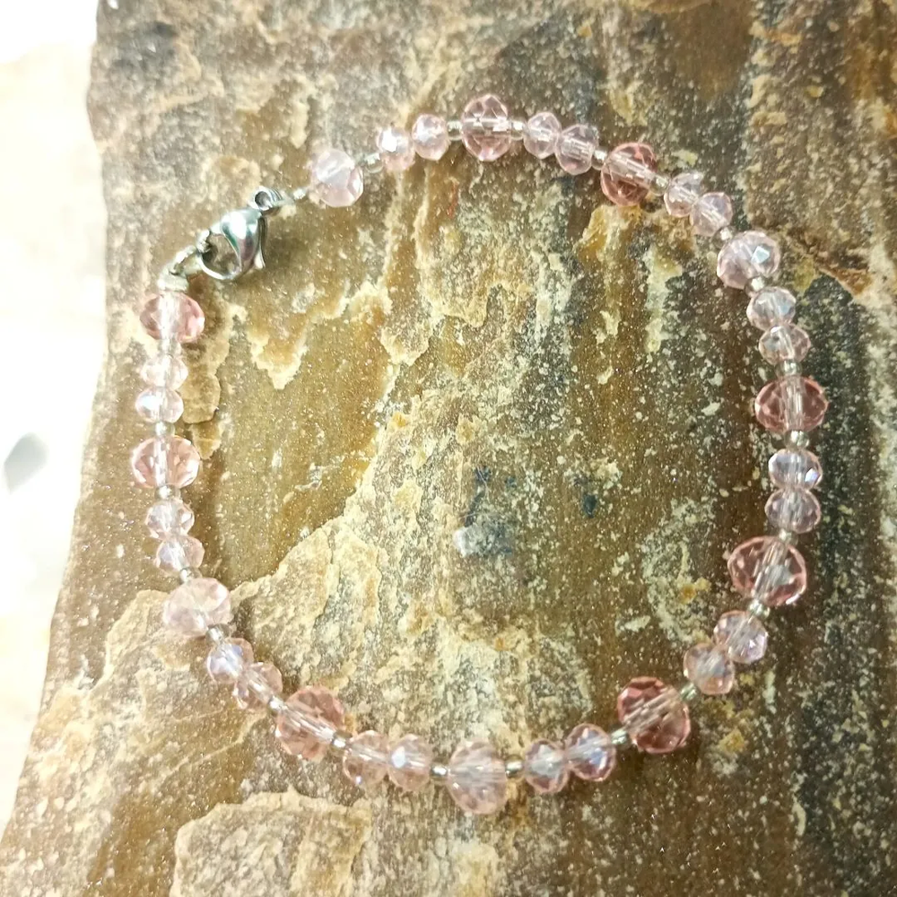 Pulsera AMOR de Cristales Rosas con tanza metálica