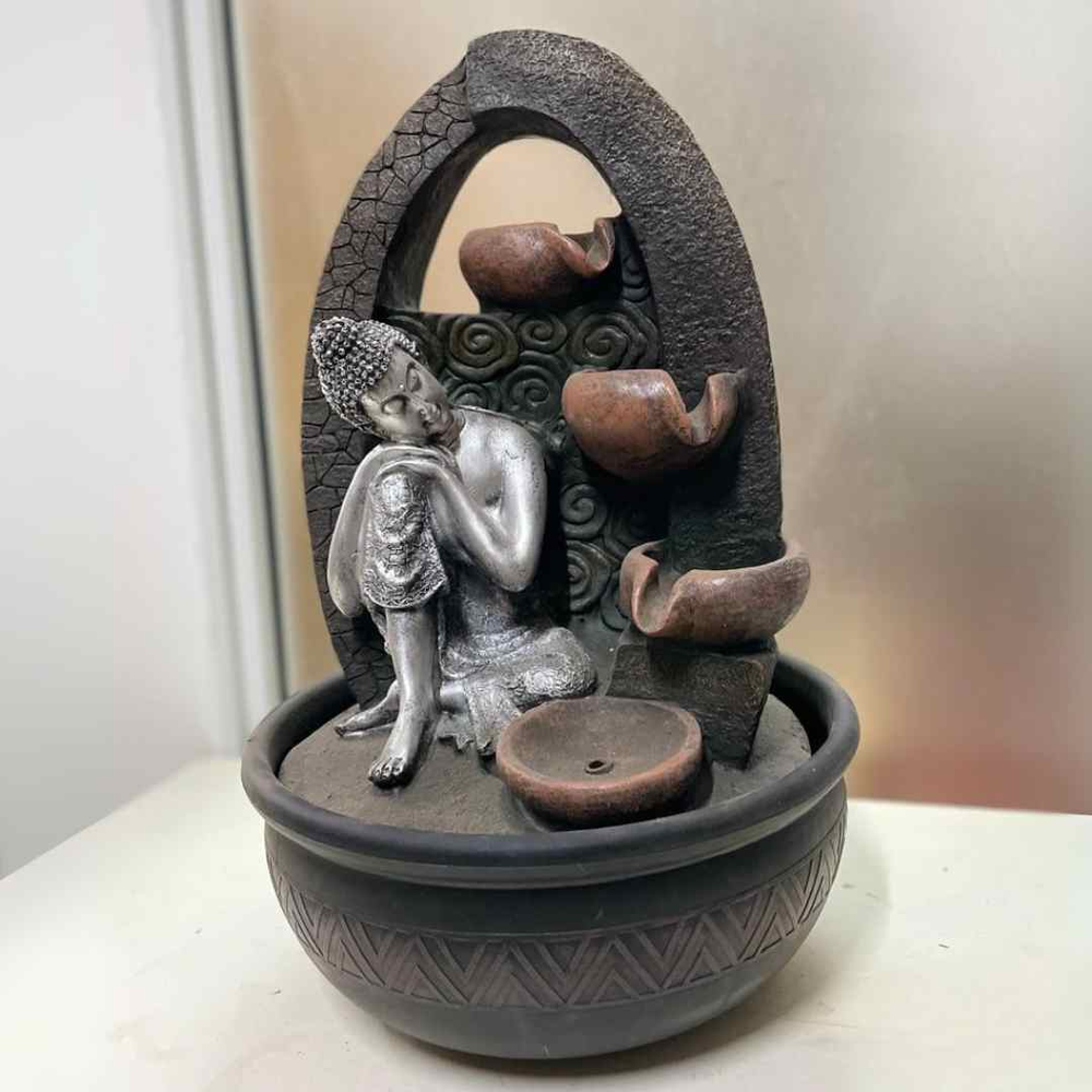 Además, el sonido del agua fluyendo aporta una sensación de paz inigualable, convirtiendo cualquier habitación en un verdadero refugio de calma. ¡No esperes más! Hacé de tu hogar un lugar lleno de armonia y serenidad con la Fuente Buda Reposando