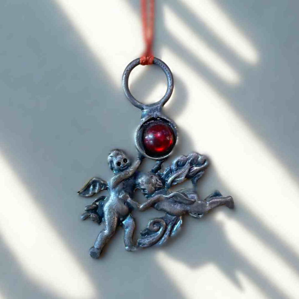 "Colgante de ángel metálico, ideal para protección y decoración de espacios. Aporta un toque espiritual y armonioso al hogar."