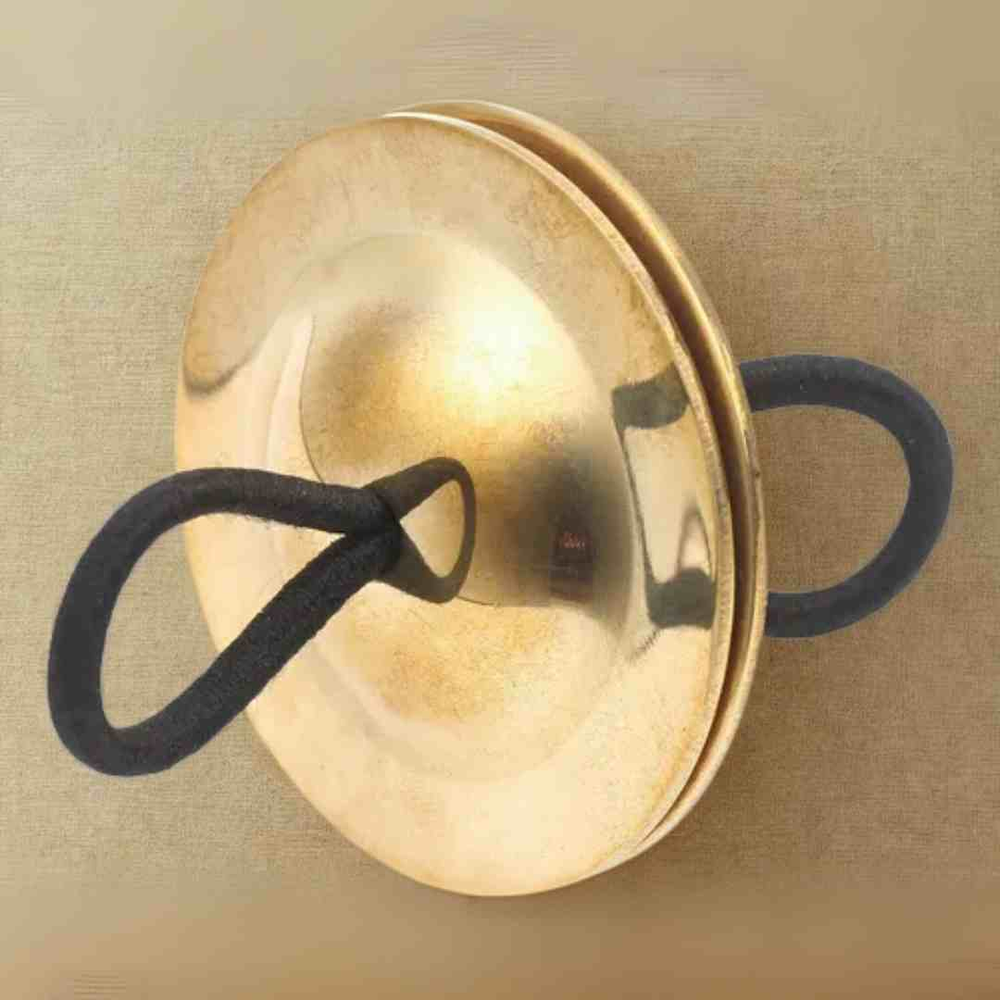 "Pequeños platillos tibetanos de bronce, conocidos como címbalos o tingshas, utilizados en prácticas de meditación y ceremonias espirituales. Producen un sonido claro y armónico al chocar entre sí, ayudando a generar un ambiente de calma y concentración."