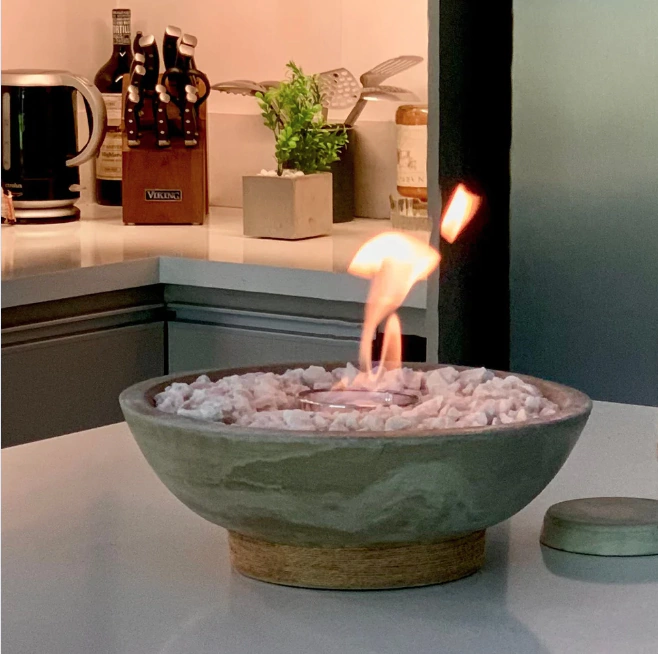 Características: ✨Medidas: Diámetro 30cm - altura 10cm ✨Fabricado en cemento lijado y laqueado. ✨Base con hilo de Yute (a elección) ✨Piedras de mármol partido ✨Capacidad: 300 cc de Bioetanol o Alcohol etílico ✨Duración: 1/1.5hs INFO IMPORTANTE 🚨 ✨Funcionan con Bioetanol o alcohol etílico al 96% (podés conseguir el bioetanol en nuestra web: ¡agregalo a tu carrito!) ✨No contaminan, no producen cenizas, olor, humo ni chispas. ✨Son transportables y no necesitan mantenimiento. ✨Pueden colocarse sobre cualquier superficie, no queman ni rayan. ✨Fácil funcionamiento y seguro. ✨Se le puede colocar aceites de esencias para aromatizar los ambientes o citronella para repeler mosquitos. ✨Viene con tapa de cemento para apagarlo.