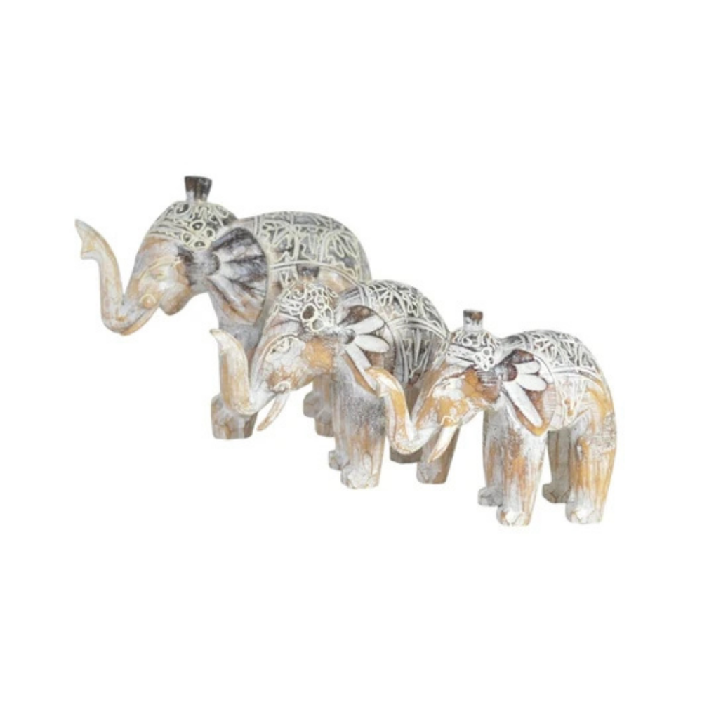Set de Elefantes de madera x 3 17 cm 15 cm 12 cm