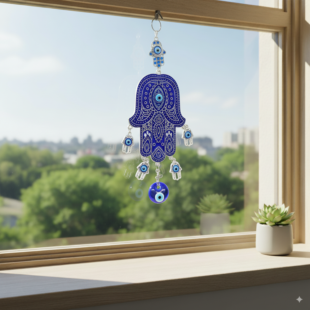 Ideal para colgar en el hogar, la oficina, locales comerciales o regalar como amuleto protector. Su tamaño grande y su intenso tono azul lo hacen destacar en cualquier ambiente, siendo al mismo tiempo un escudo espiritual y un adorno elegante.