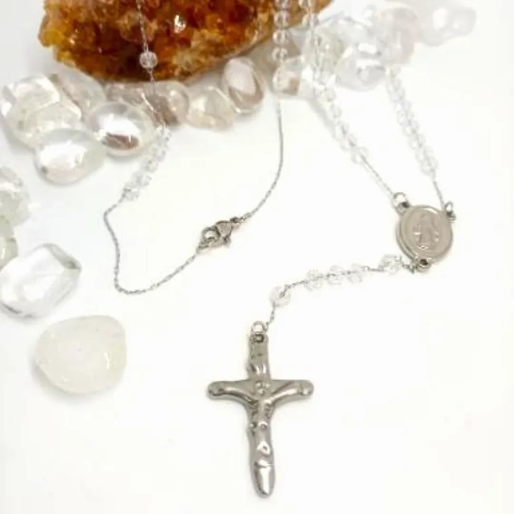 Rosario de cuentas vitreas cristal facetado de 50 cm de acero quirúrgico