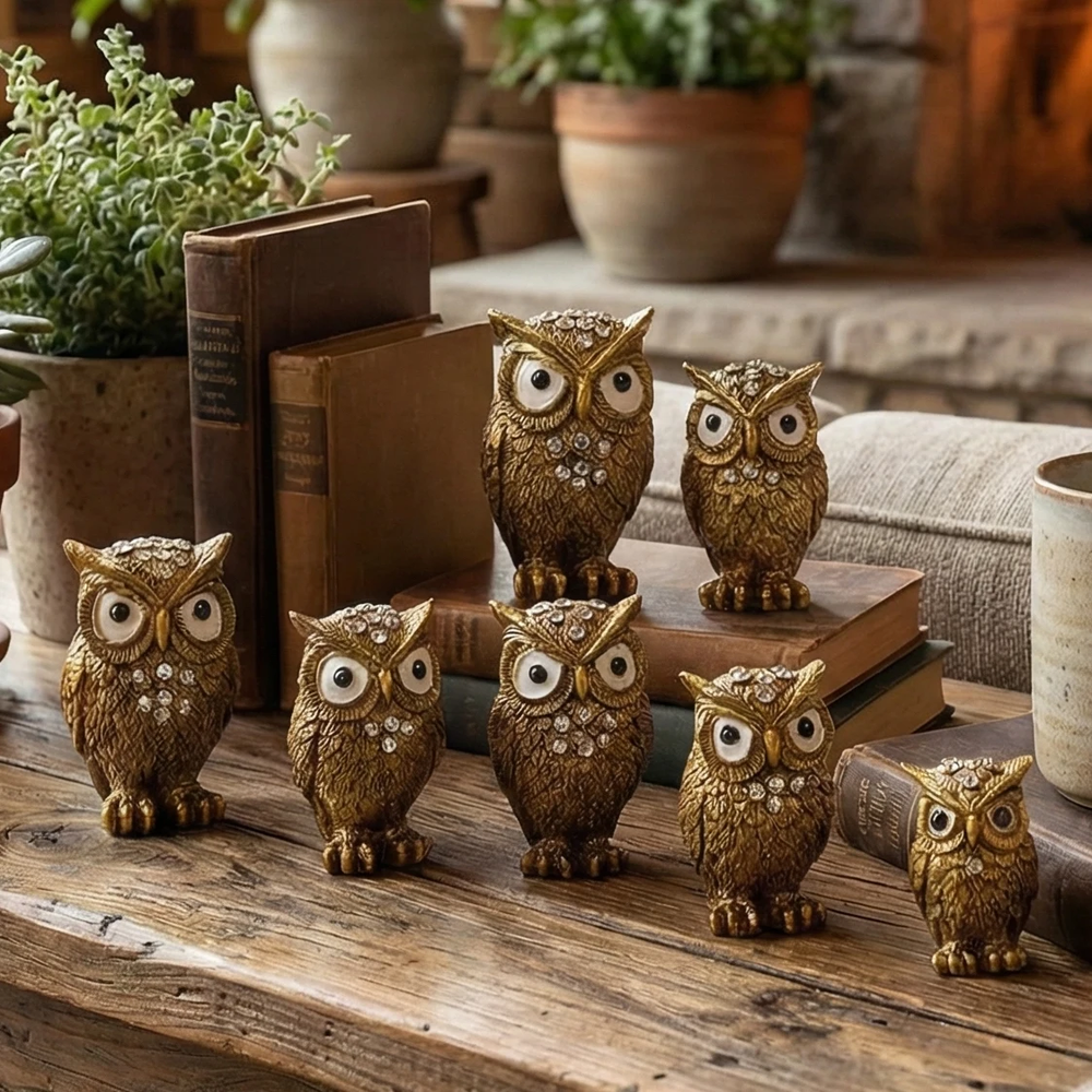✨🦉 Familia de Búhos Dorados Decorativos🦉✨
