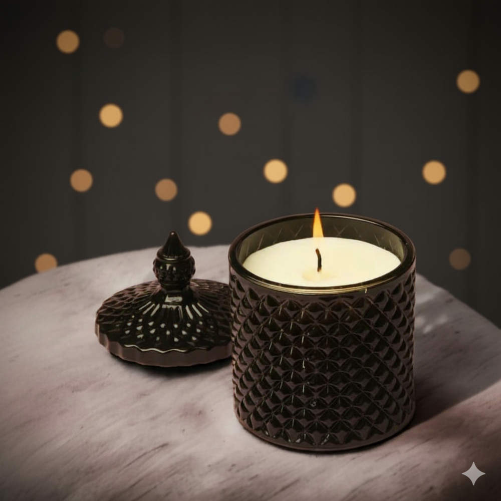 Un detalle elegante y funcional para cualquier espacio. Esta vela en caramelera de vidrio tallado no solo aporta una luz cálida y relajante, sino que también funciona como un objeto decorativo que realza la ambientación de salas, dormitorios o espacios de bienestar.
