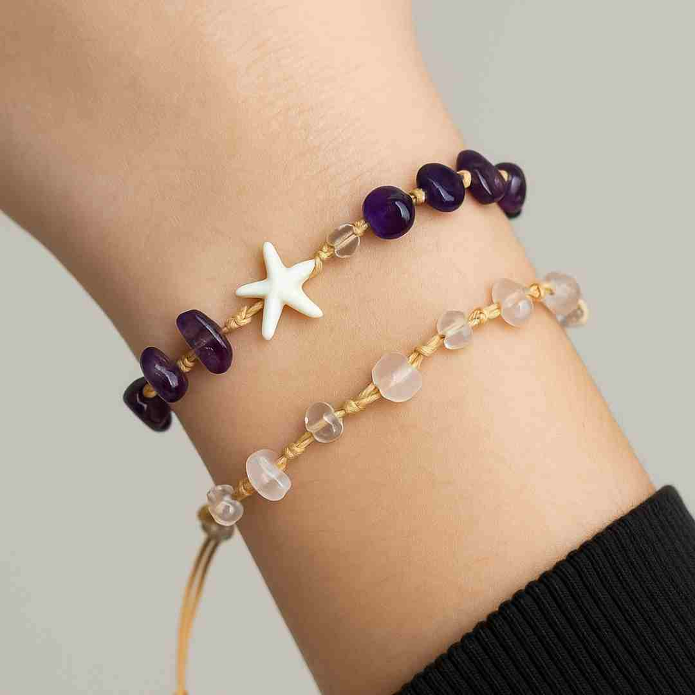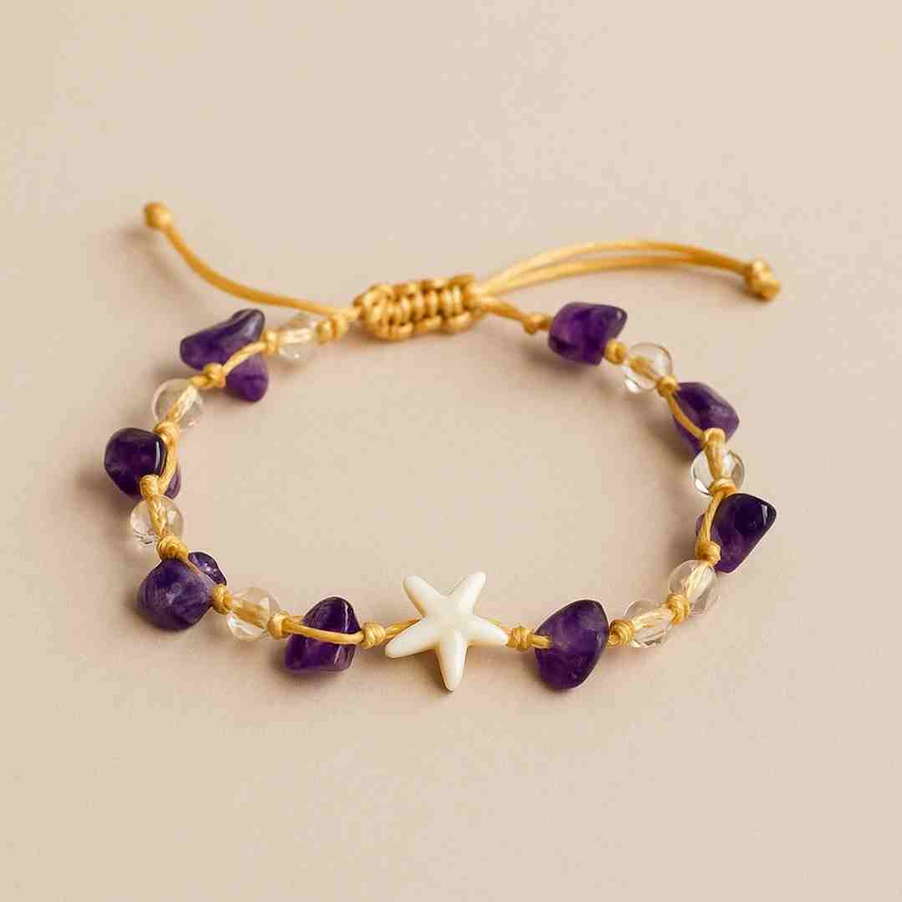 💜 Pulsera de Amatista con Hilo y Escallas – Protección y Calma Interior 💜