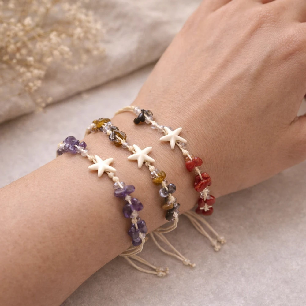 Pensada para quienes buscan un accesorio con impronta espiritual, esta pulsera transmite calma, equilibrio y conexión interior, convirtiéndose en un complemento ideal para el uso diario o para regalar. Su estética boho-chic la hace atractiva y fácil de combinar, lo que la transforma en un producto de excelente rotación en ventas mayoristas.