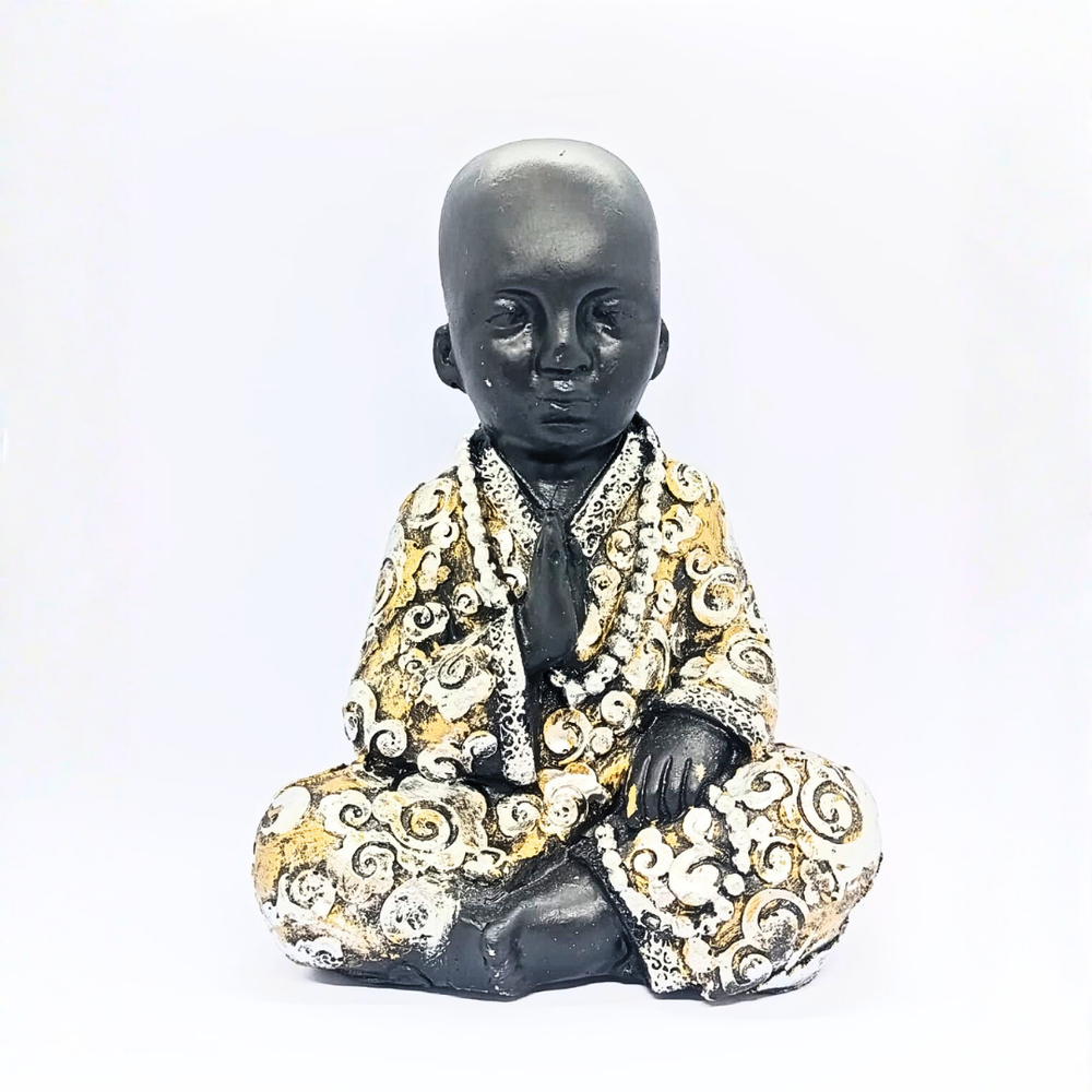 Transmití paz, armonía y equilibrio con esta elegante figura de Buda Meditando, una pieza que combina espiritualidad y estilo moderno. Su acabado en tonos negro mate con detalles dorados y blancos realza cualquier ambiente, aportando serenidad y un toque sofisticado a la decoración.