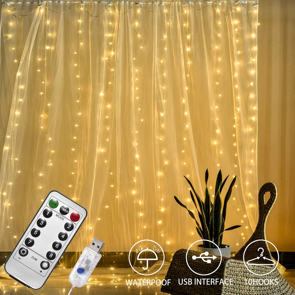 Con conexión USB y control remoto, podrás encender, apagar o elegir entre distintos modos de iluminación con solo un clic. Además, incluye ganchos de plástico para una instalación rápida y segura, ideal para colgar sobre cortinas, paredes o fondos decorativos.
