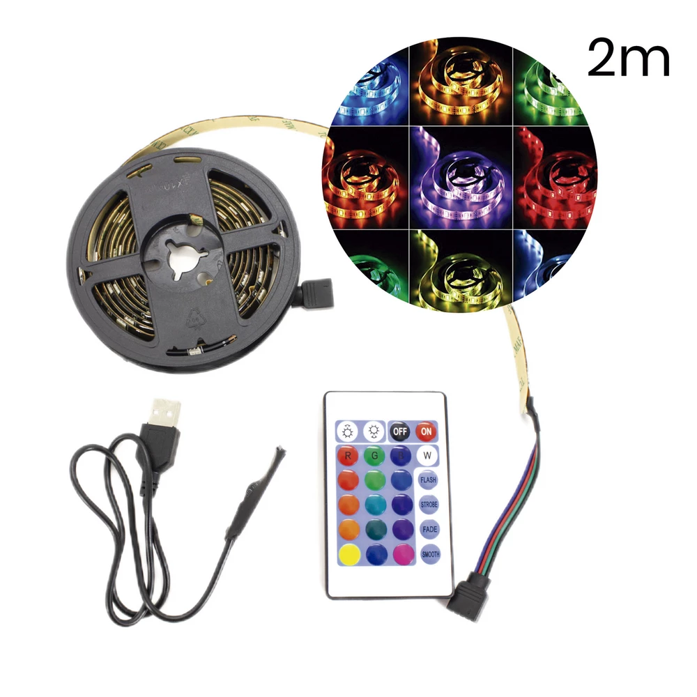 Transformá cualquier ambiente con la Tira LED 5050 RGB de 2 metros con control remoto. Ideal para decorar tu habitación, living, escritorio o la parte trasera del televisor, creando un efecto de luz ambiental único que combina con tu estado de ánimo o estilo.