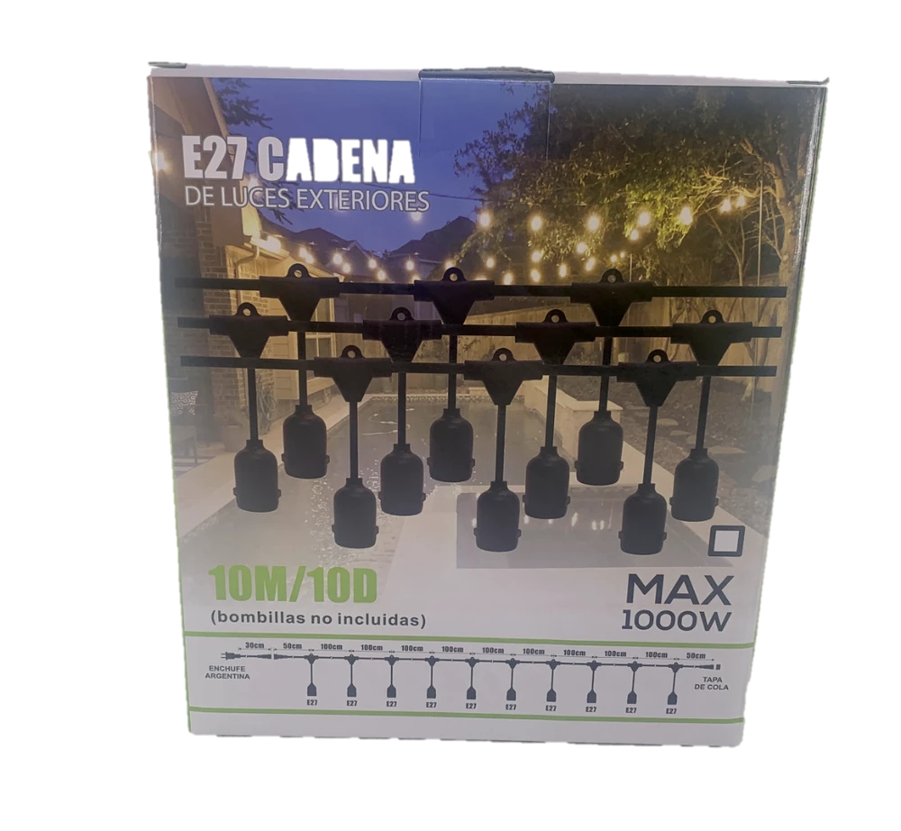 Diseñada para uso profesional y decorativo, la Guirnalda E27 de 10 metros es ideal para crear ambientes cálidos, elegantes y resistentes en exteriores. Perfecta para patios, terrazas, bares, eventos o jardines, combina practicidad, durabilidad y un diseño adaptable a cualquier tipo de foco LED o vintage.