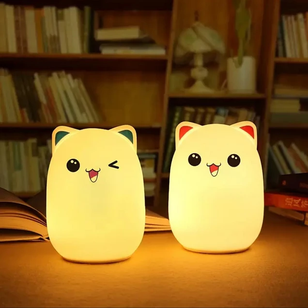 🐱 Diseño: forma de gato kawaii con luz multicolor.