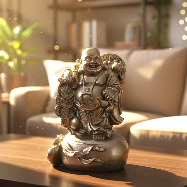 Diseño: Buda de la abundancia con monedas y saco de prosperidad