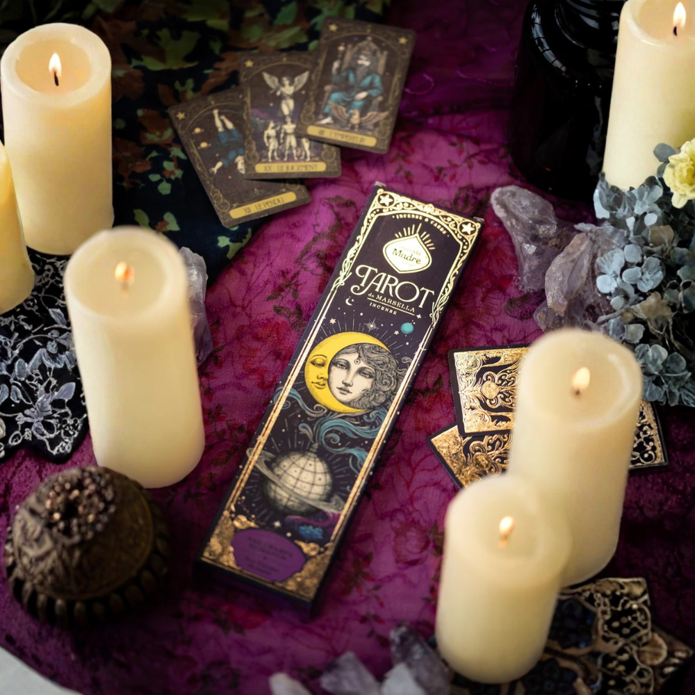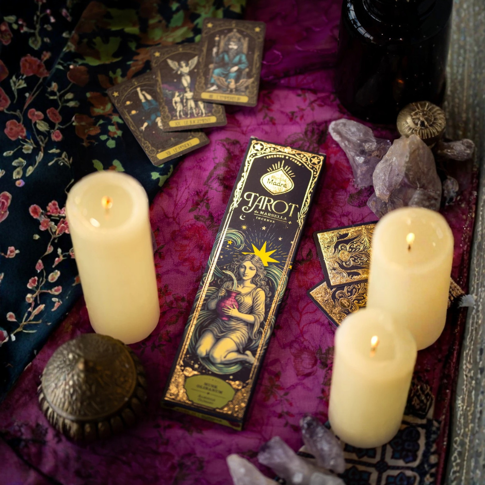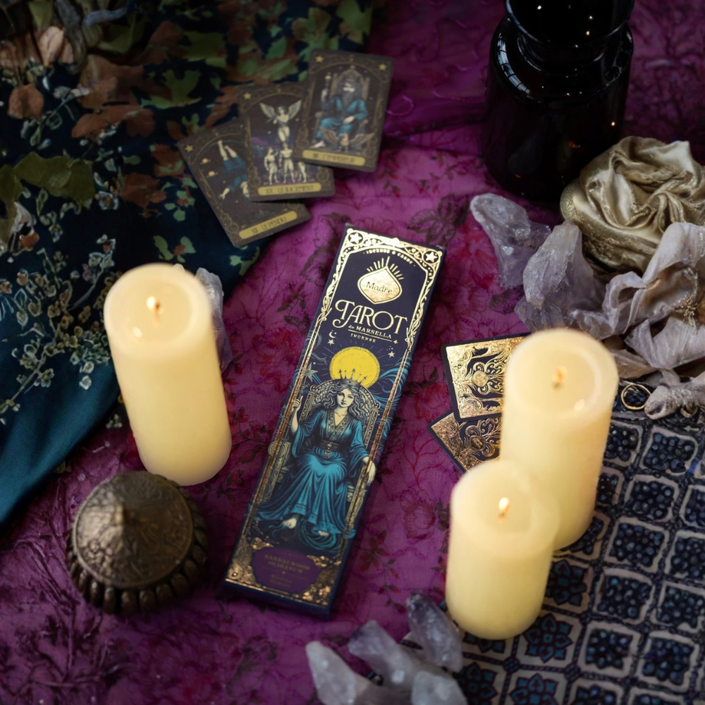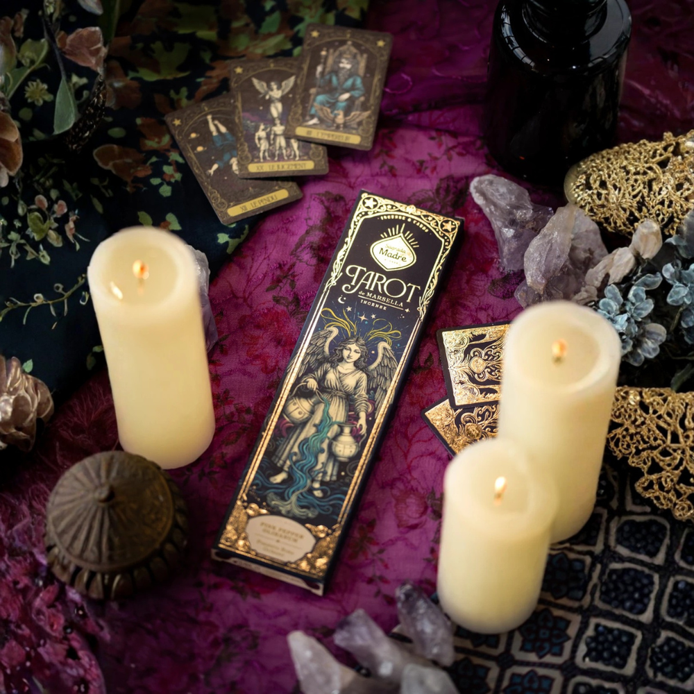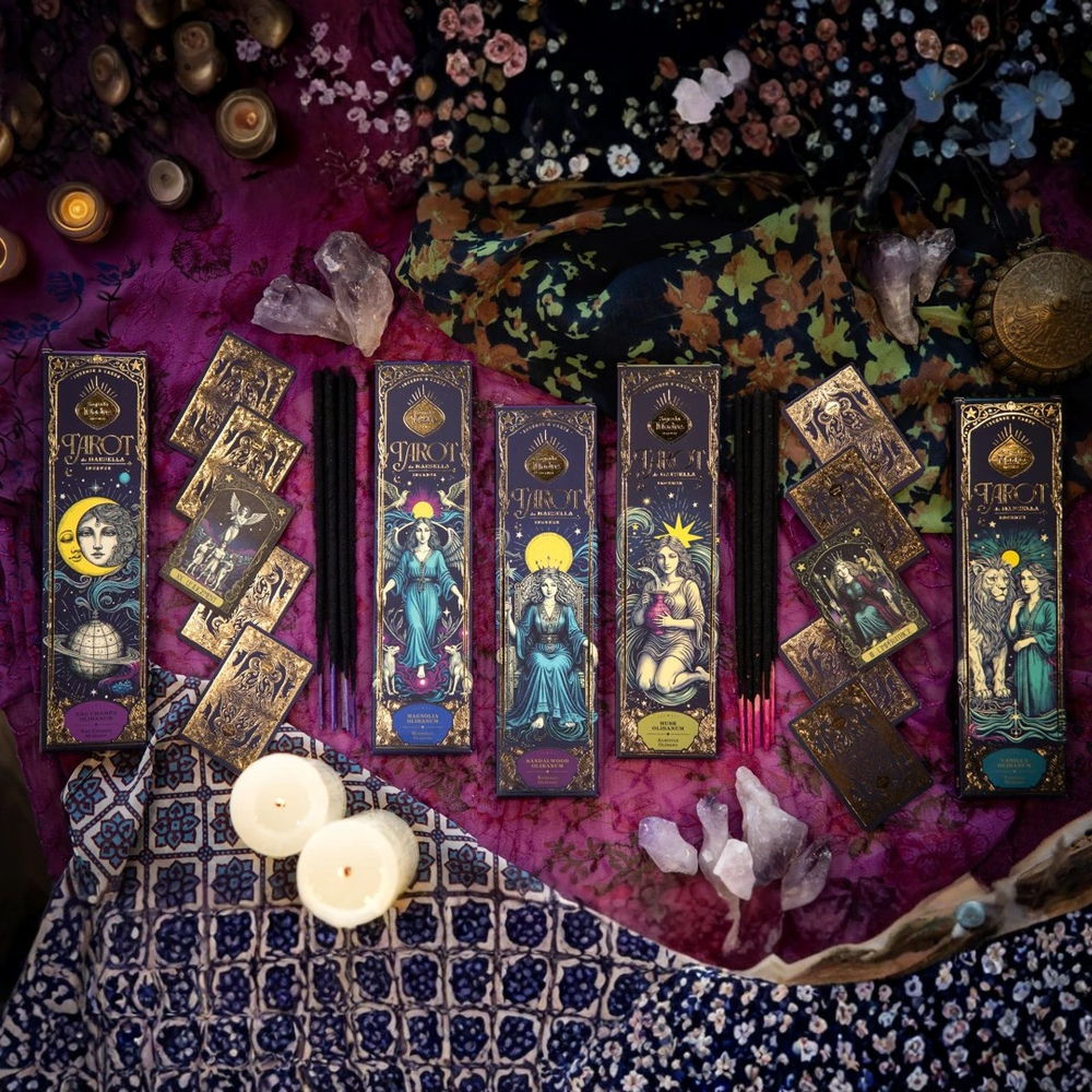Inspirados en la mística del Tarot de Marsella, estos sahumerios están pensados para acompañar rituales de conexión espiritual, meditación o lectura de cartas. Cada caja combina fragancias intensas y envolventes con un diseño artístico único, representando diferentes arcanos y energías.
