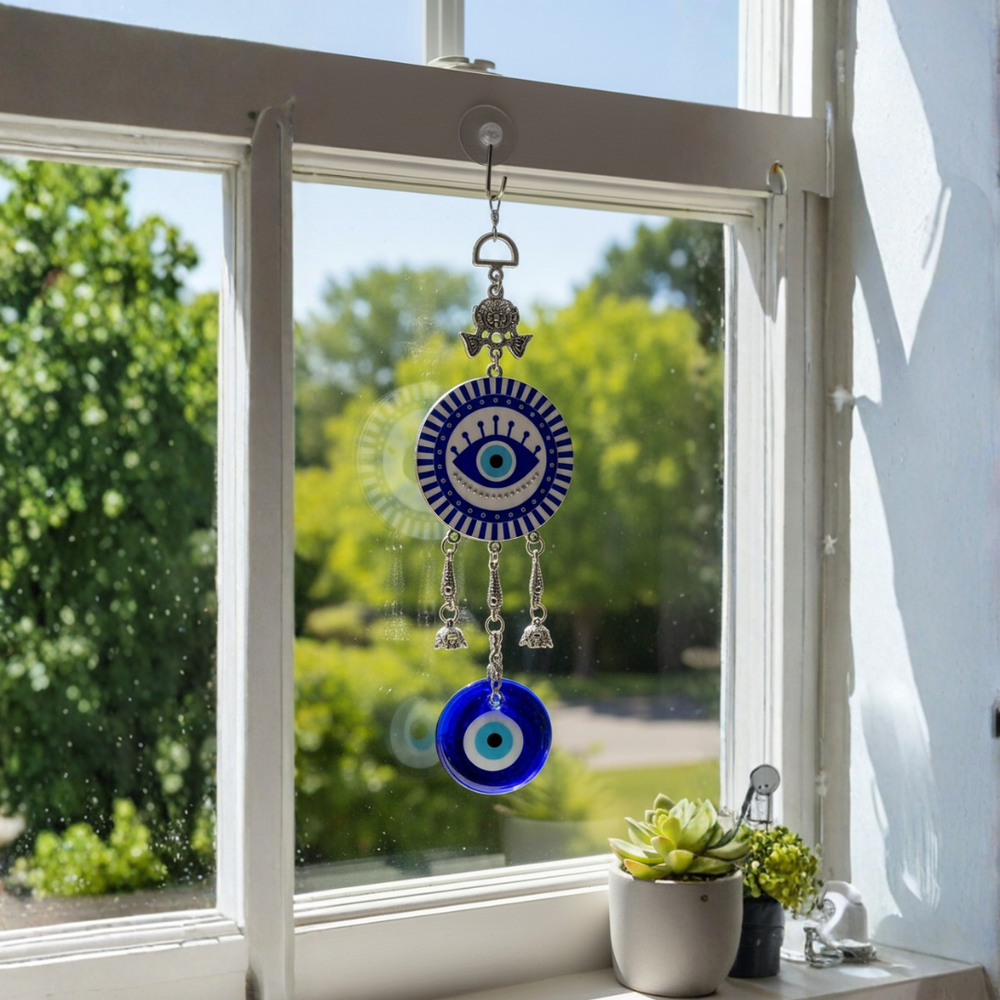 El clásico Ojo Turco, símbolo protector por excelencia, renovado en un diseño moderno con tonos azul y blanco que transmiten calma, pureza y energía positiva. Este colgante ayuda a bloquear las malas vibras y atraer armonía, convirtiéndose en un imprescindible para el hogar, el auto o el negocio.