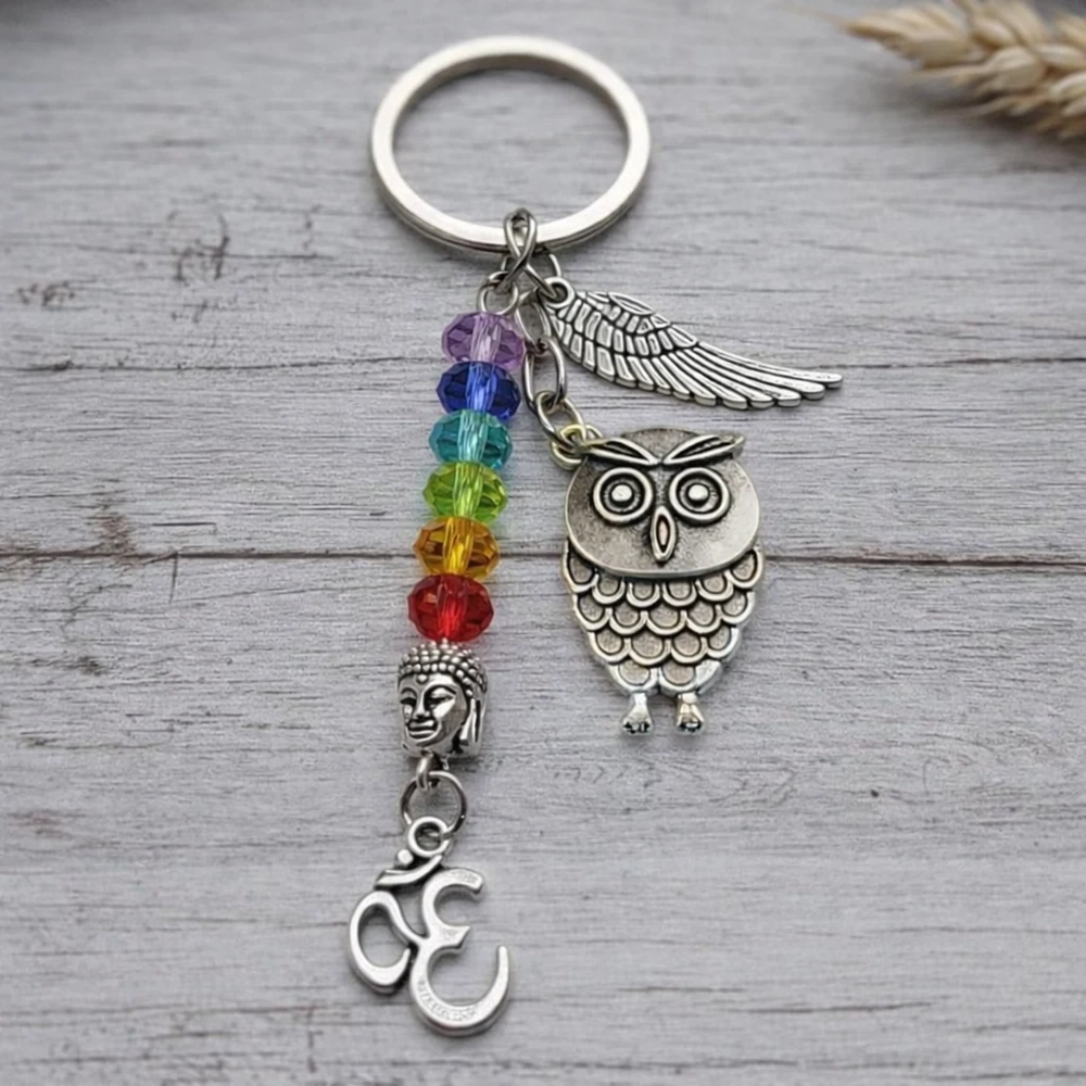 Incluye: Símbolo Om + cuentas de 7 chakras + dije de Buda + ala metálica
