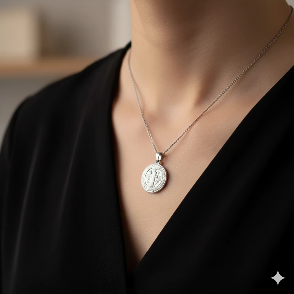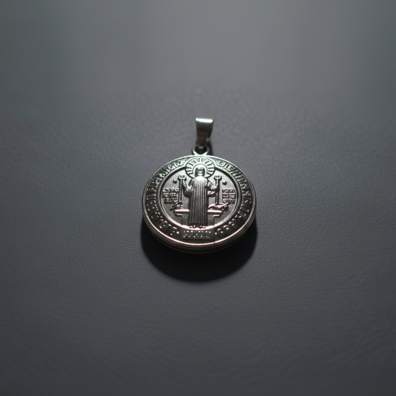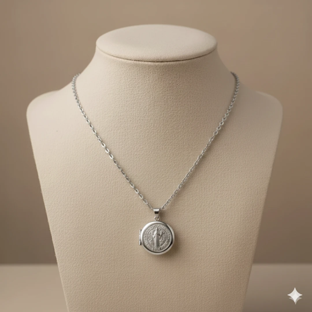 Relicario San Benito Plateado – Protección poderosa en un diseño clásico