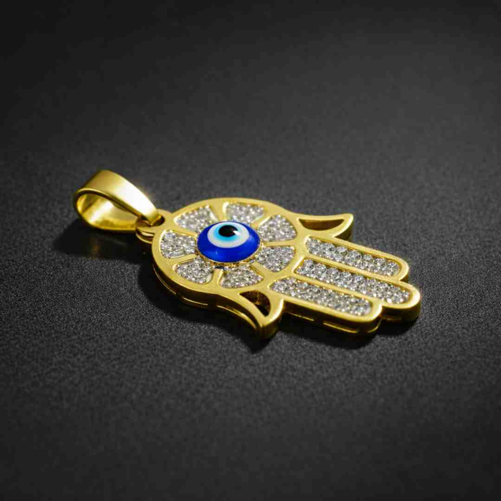 Dije Mano de Fatima con Ojo Turco y Strass