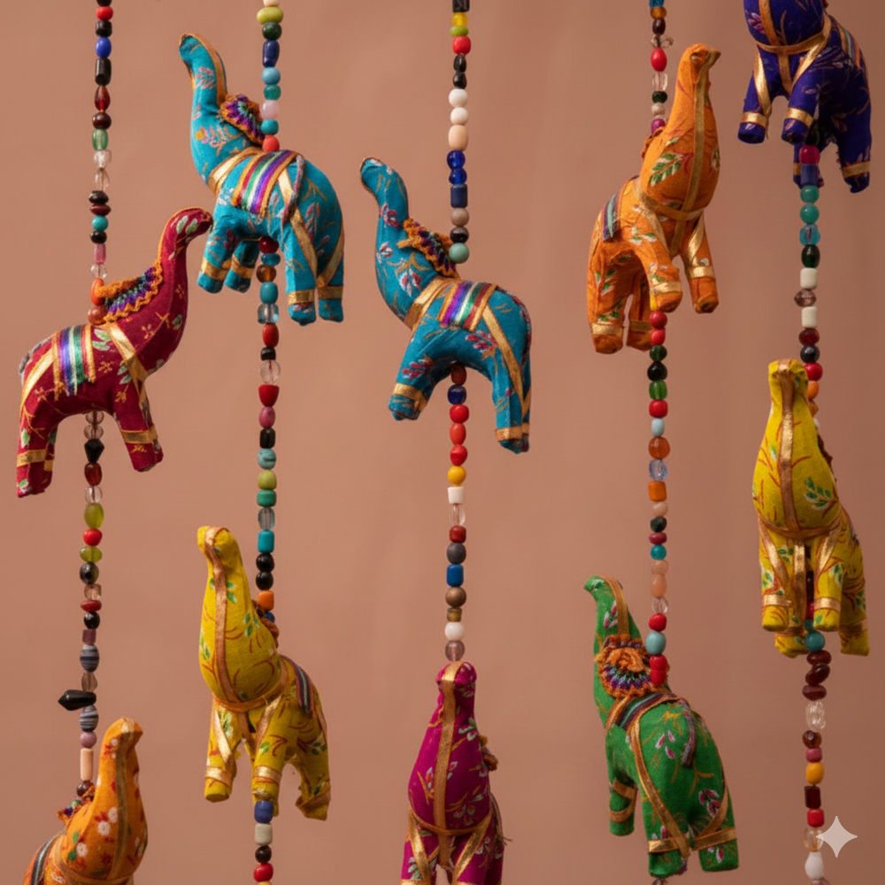 Colgante de 7 Elefantes de Tela – Protección, buena suerte y decoración colorida