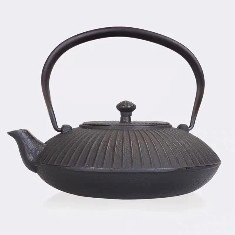 Tetera de hierro fundido de 800 mL se destaca por su estética minimalista, equilibrada y sofisticada, ideal para quienes buscan una pieza funcional pero con fuerte presencia decorativa. Su cuerpo ancho y bajo crea una silueta armoniosa, mientras que las líneas verticales grabadas aportan textura y elegancia, evocando el diseño artesanal japonés tradicional.