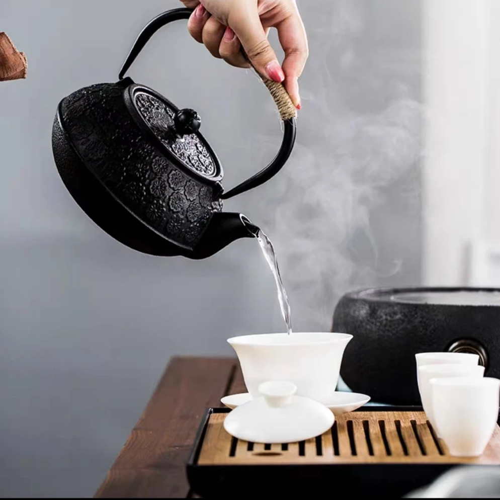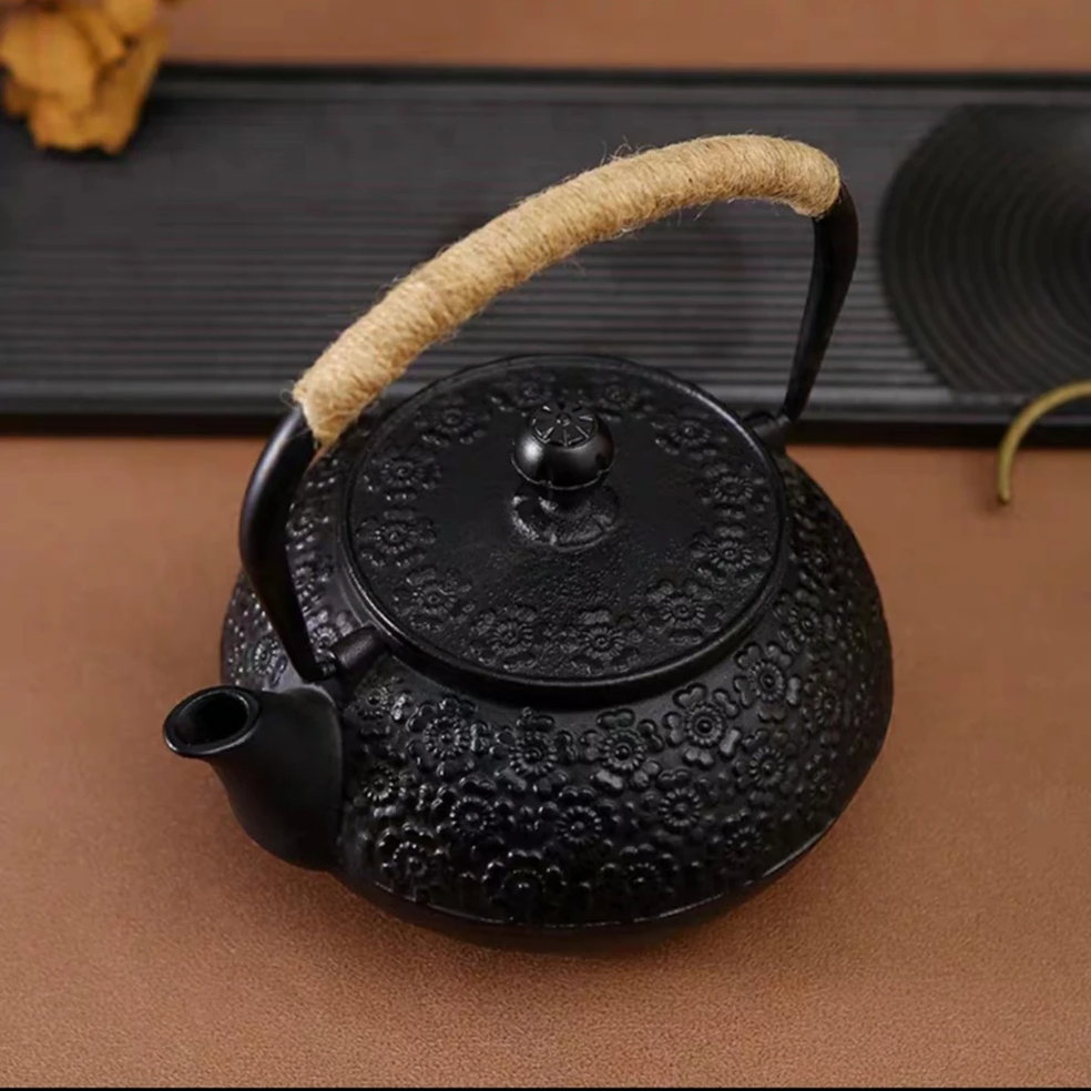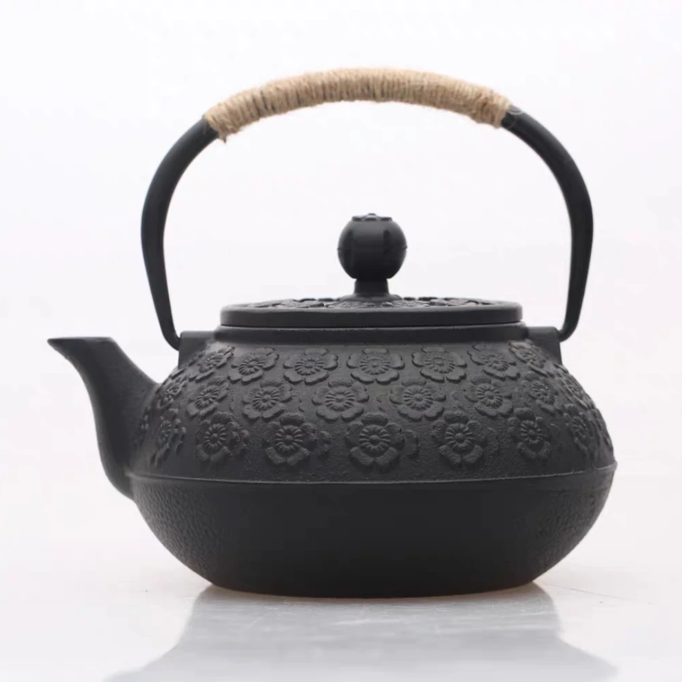 Esta tetera presenta una estética fina, armoniosa y profundamente artesanal, destacándose por su cuerpo redondeado cubierto de delicados relieves florales. Cada flor moldeada en el hierro fundido aporta textura, profundidad y un efecto visual elegante que transforma la pieza en un verdadero objeto decorativo.