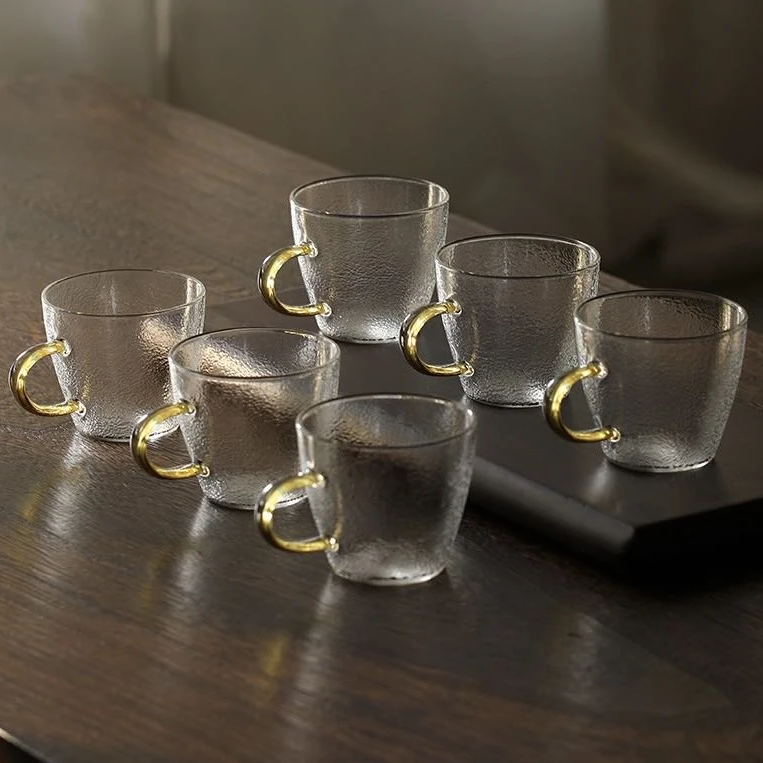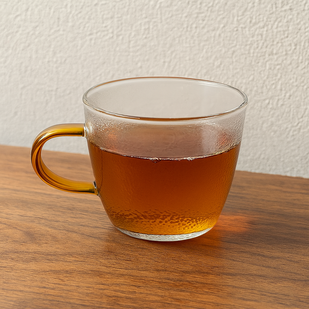 Esta taza de vidrio transparente liso con asa color ámbar destaca por su diseño simple, moderno y elegante. Su cuerpo completamente liso realza el color de la bebida, mientras que el asa en tono ámbar aporta un detalle cálido y distintivo que eleva su presentación.