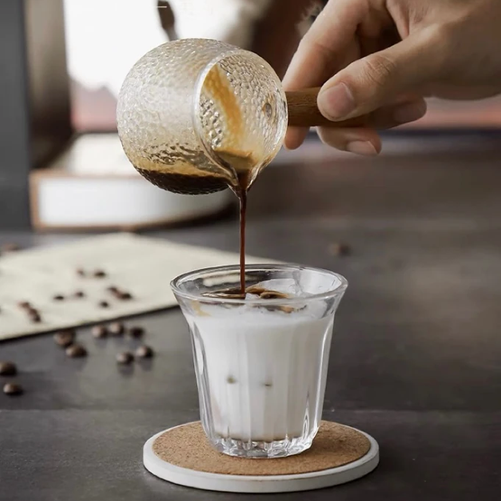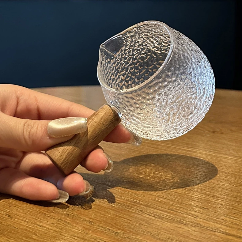 El soporte de madera aporta un agarre cómodo y seguro, además de sumar calidez y estilo natural. Ideal para café, té, infusiones o para servir leche y agua caliente, es un producto muy valorado en casas de té, cafeterías de especialidad, bazares y tiendas de diseño.